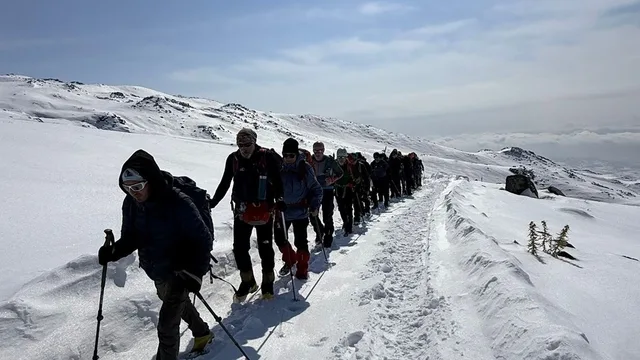 Türkiye’nin en yüksek zirvesi olan Ağrı Dağı’na tırmanmak için farklı illerden bir araya gelen 19 kişilik dağcı grubu, tırmanışa başladı. Ekip, zirve hedefi doğrultusunda yürüyüşe geçerek, belirlenen rota üzerinden ilerlemeyi planlıyor. Rehber Cuma Saltık’ın liderliğinde gerçekleştirilen bu etkinlikte, ilk olarak kamp alanına ulaşılması amaçlanıyor. Hava koşullarının elverişli olması durumunda, dağcıların önümüzdeki günlerde Ağrı Dağı’nın zirvesine ulaşması bekleniyor.